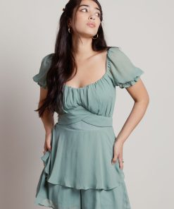 Princess Charming Ruffle Romper – Sage