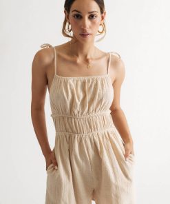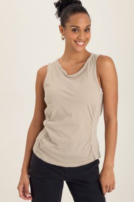 Ludora Linen Stripe Tank with Sharkbite Hem