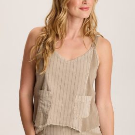 Ludora Linen Stripe Tank with Sharkbite Hem