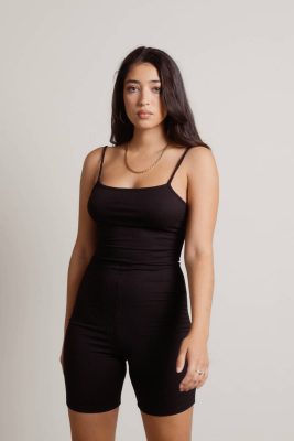 Never Enough Ribbed Romper Unitard – Black